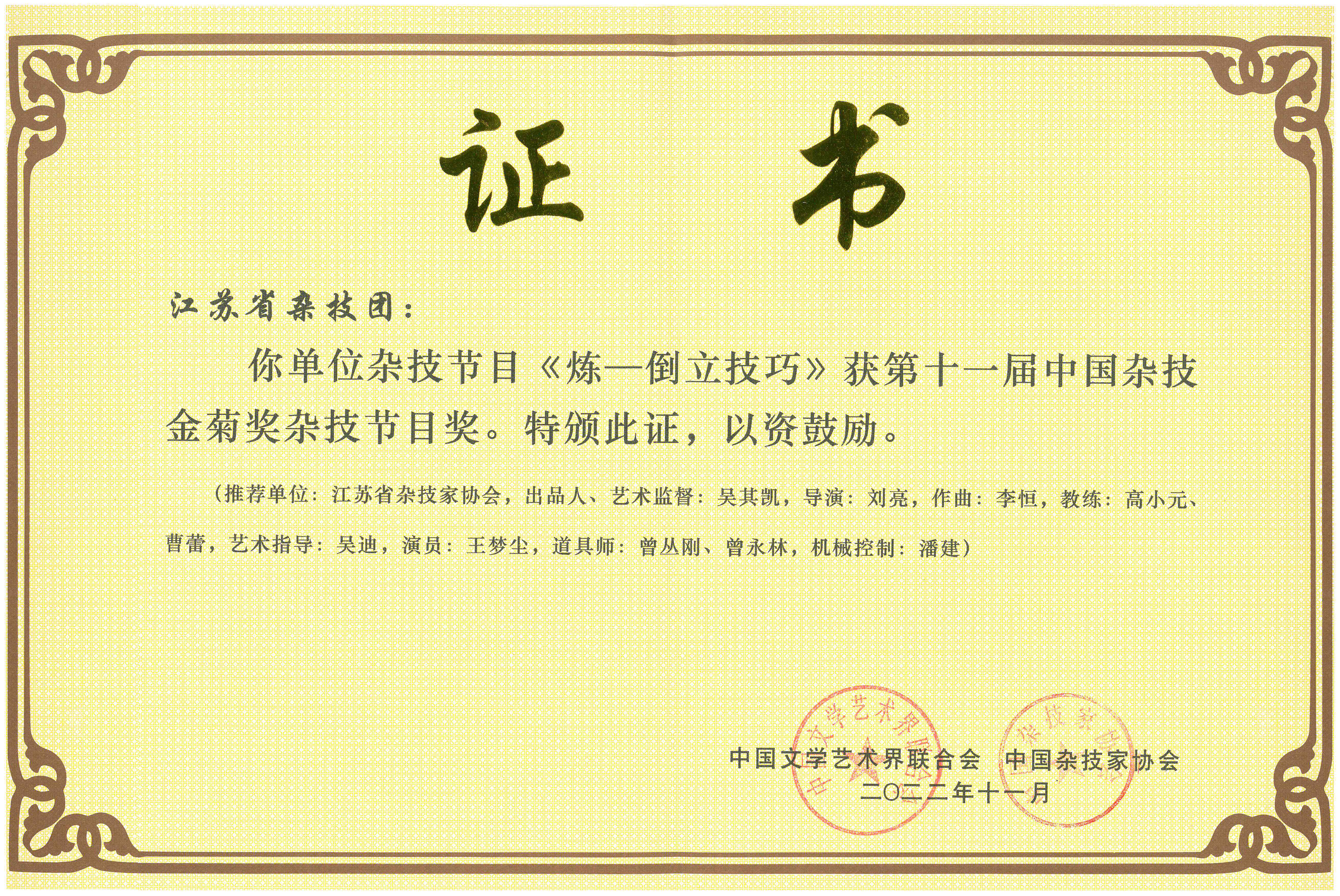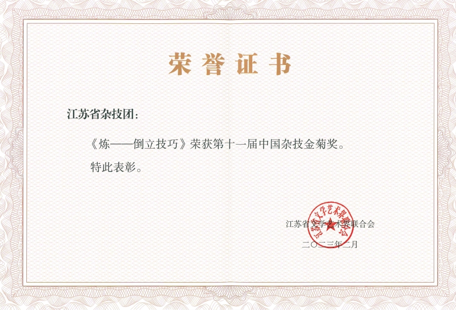 煉是百折不撓的決心。寶劍鋒從磨礪出,梅花香自苦寒來,演員以左右單手倒立跳把技巧為基礎(chǔ),體現(xiàn)自身核心控制力的同時,更彰顯了專注于細(xì)節(jié)把握,執(zhí)著于基礎(chǔ)積累的毅力和韌勁。
