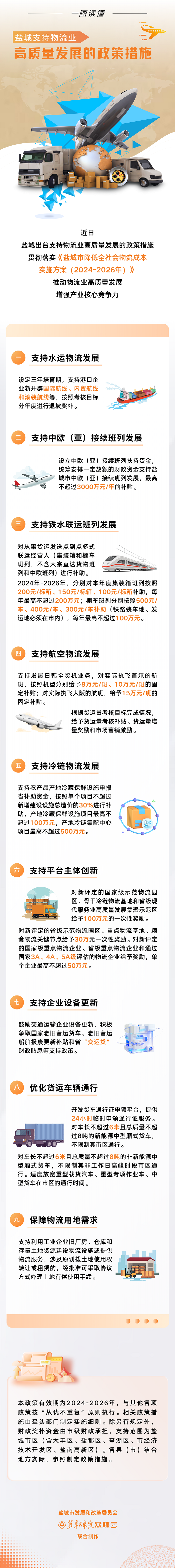 《鹽城市降低全社會物流成本實施方案(2024-2026年)》《關(guān)于支持物流業(yè)高質(zhì)量發(fā)展的政策措施》的政策圖解