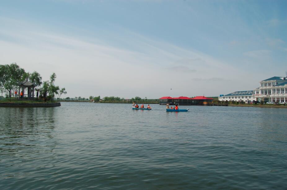 As a national 3A tourist site, demonstrative point in agriculture, and provincial 4A demonstrative rural tourism, this Park has become the largest eco tourist resort in northern Jiangsu based on ecological agriculture, integrating tourism, sightseeing, business conference, extension practice, vacation, science popularization, environmental protection education. Inside the site, there are golf courts, table tennis courts, fishing center, eco-education pavilion, eco-brewery, tofu house, Chinese dungeon site, horse race, barbeque, windmill, exhibition of fisherman and farmers, among 30 programs. There are also business conference zone made up of Muwu Village (wooden house village), water tea bar, conference holiday center villas, and inns. The park also has a wide range of choices of eco-friendly eggs, grey goose eggs, wine, honey, aqua weed oil, wine-marinated crab, ganoderma, lily, etc.