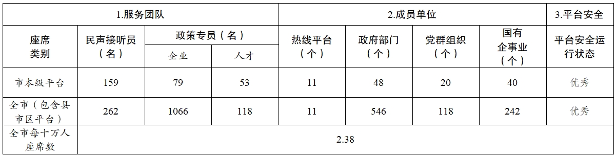 1.率先實現(xiàn)省“民聲智慧聽”平臺上線運行。承接省“民聲智慧聽”平臺試點任務(wù),構(gòu)建市縣鎮(zhèn)三級熱線服務(wù)體系,完成11個縣級分中心和108家市直承辦單位的設(shè)置,于3月21日在全省范圍內(nèi)率先上線運行。持續(xù)完善熱線服務(wù)管理機制,實現(xiàn)交辦、反饋、數(shù)據(jù)監(jiān)測等統(tǒng)一模式管理。進一步優(yōu)化平臺智能化應用,全面推進我市熱線管理統(tǒng)籌規(guī)范、服務(wù)便捷高效。