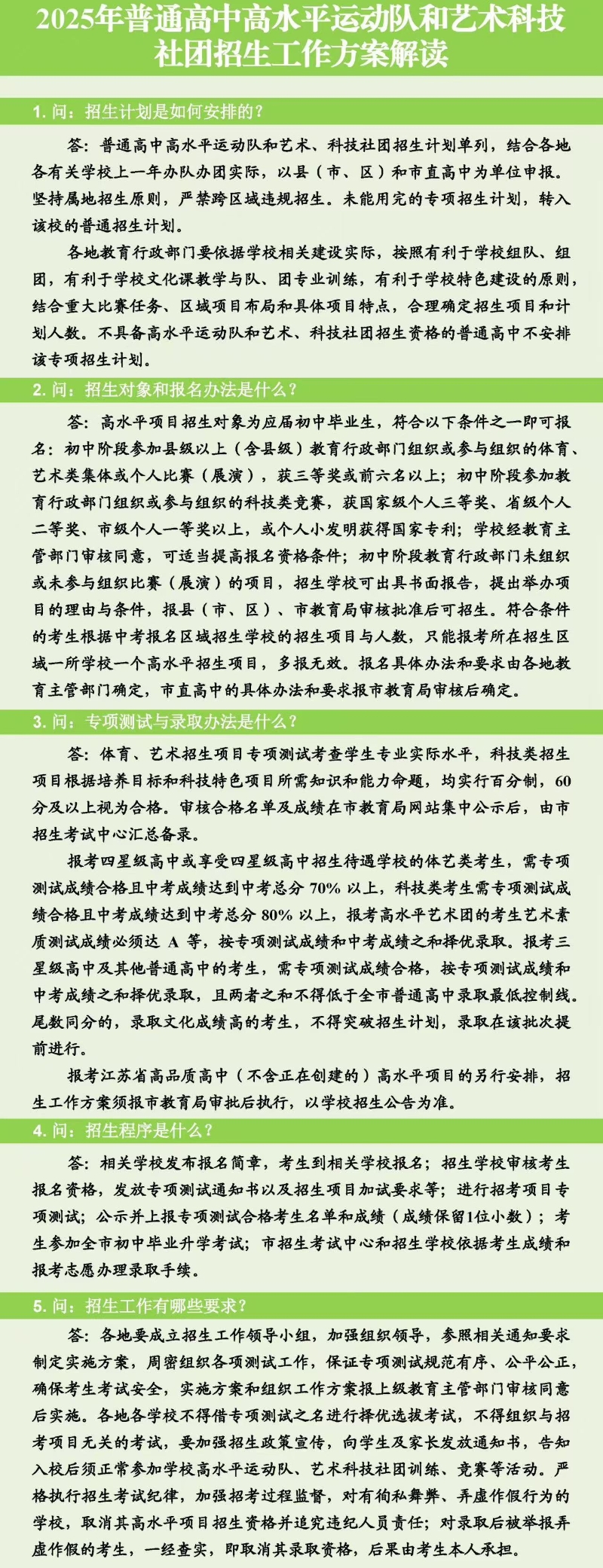2025年普通高中高水平運動隊和藝術(shù)科技社團(tuán)招生工作方案解讀