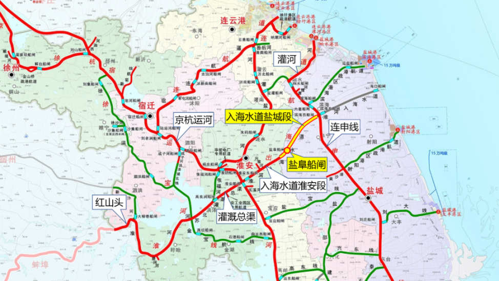 ?? ??? ????, ?? ???(京杭運河)? ???(連申線) ??? ???? ??? ??? ???? ?? ?? ???? ????, ???(蘇北) ?? ?? ???? ?? ????. ?? ??, ???, ??? ? ??? ?? ??? ?? ? ???? ?? ??? ???? ??, ????? ?? ??? ???? ??? ??? ???? ??? ????.