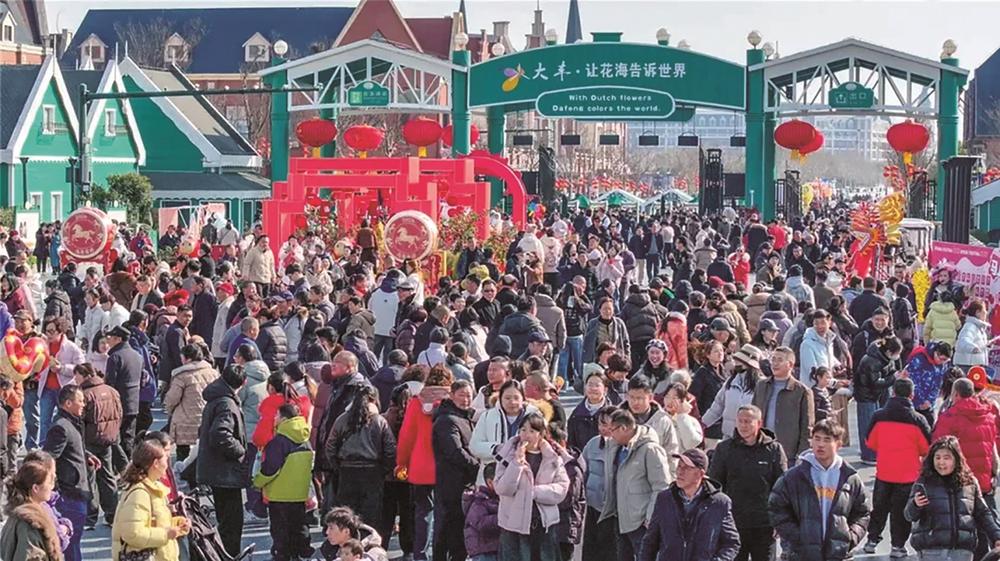 春節(jié)假期,鹽城人潮涌動(dòng),熱鬧非凡。大縱湖“山海奇遇縱湖燈會(huì)”的燈組前擠滿了駐足觀賞的市民游客;大洋灣內(nèi)游客將表演隊(duì)伍圍得里三層外三層,歡呼聲此起彼伏;荷蘭花海人流如織,花車巡游隊(duì)伍在人群中緩緩前行,拍照的游客幾乎挪不動(dòng)步;“來森林 過大年”黃海森林公園吸引眾多家庭前來打卡,森林里彌漫著歡聲笑語(yǔ)。