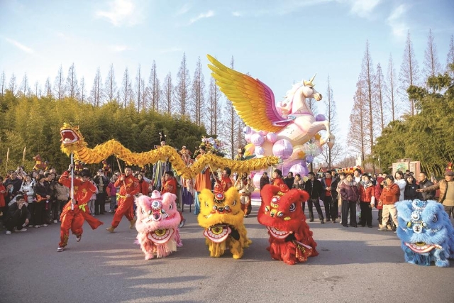 主客共享,近悅遠(yuǎn)來。春節(jié)的熱鬧不只是游客的狂歡,更是本地市民與遠(yuǎn)方來客共同編織的年味記憶。鹽鎮(zhèn)水街的第十二屆新春廟會(huì),無論是外地游客還是“老鹽城”,都能在沉浸式體驗(yàn)中感受鹽城的中國(guó)年。西溪天仙緣“非遺映西溪 騏驥踏春來”,魔術(shù)、武術(shù)、沉浸式演藝輪番登場(chǎng),天仙巡游與游客熱情互動(dòng)。日月島里,孩子們?cè)诖笞匀恢斜M情撒歡,在太空體驗(yàn)館里暢想未來,無論是本地萌娃還是外地小游客,都笑得一樣燦爛。